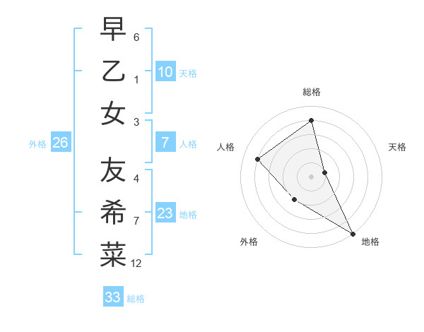 早乙女 友希菜さんを姓名の画数から五運を鑑定