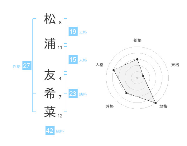 松浦 友希菜さんの総格は42画の3点!