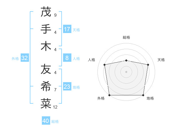 茂手木 友希菜さんを姓名の画数から五運を鑑定