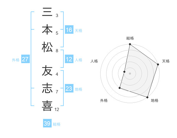 三本松 友志喜さんを姓名の画数から五運を鑑定