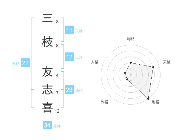 三枝 友志喜さんを姓名の画数から五運を鑑定