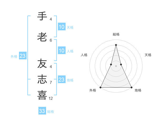 手老 友志喜さんを姓名の画数から五運を鑑定