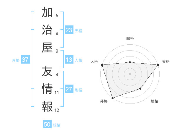 加治屋 友情報さんを姓名の画数から五運を鑑定