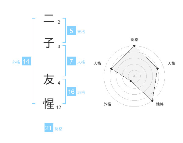 二子 友惺さんの総格は21画の5点!