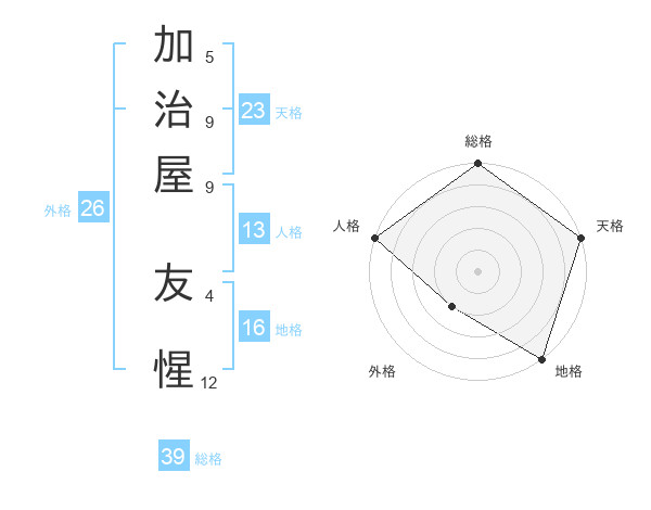 加治屋 友惺さんを姓名の画数から五運を鑑定