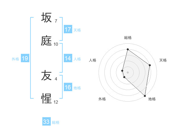 坂庭 友惺さんの総格は33画の4点!