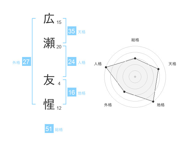 広瀬 友惺さんの総格は51画の3点!