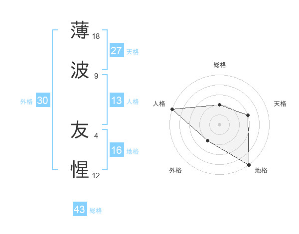 薄波 友惺さんの総格は43画の2点!