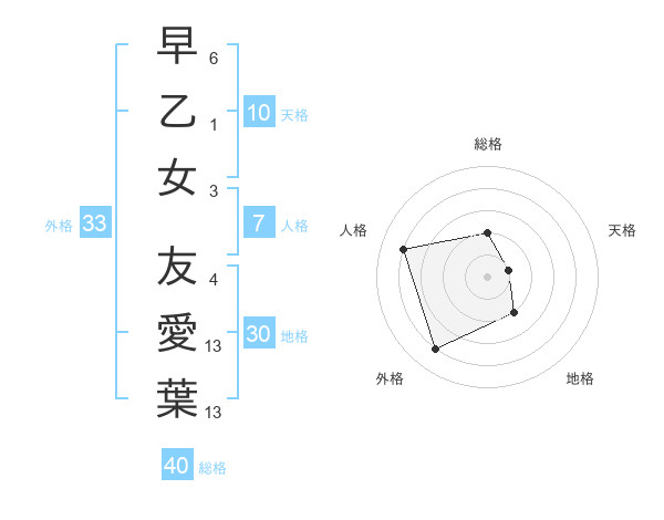 早乙女 友愛葉さんを姓名の画数から五運を鑑定
