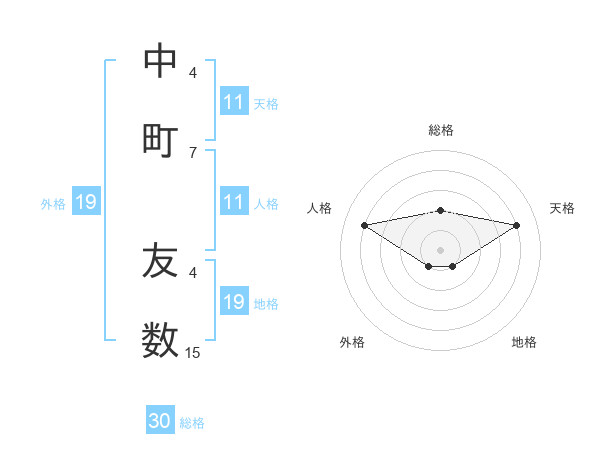 中町 友数さんの天格は11画の4点!