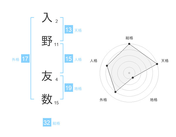 入野 友数さんの天格は13画の5点!