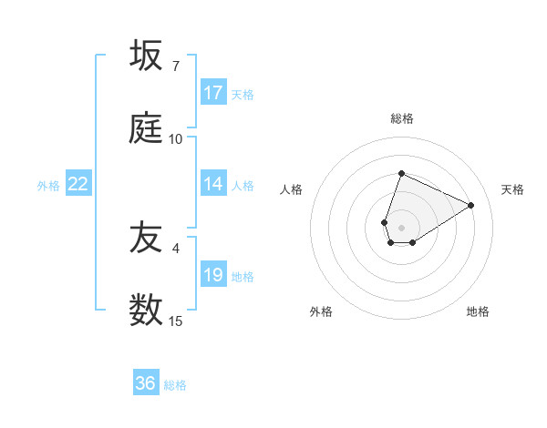 坂庭 友数さんの天格は17画の4点!