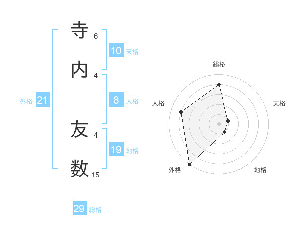 寺内 友数さんの総格は29画の4点!