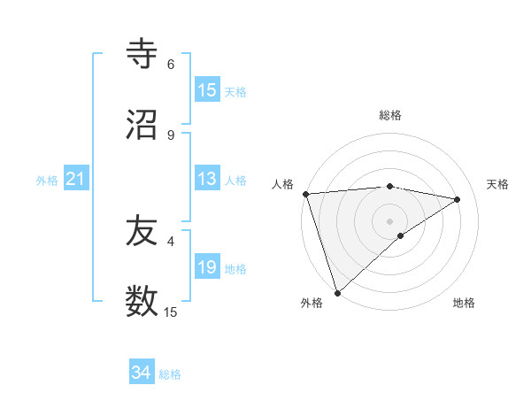 寺沼 友数さんの外格は21画の5点!