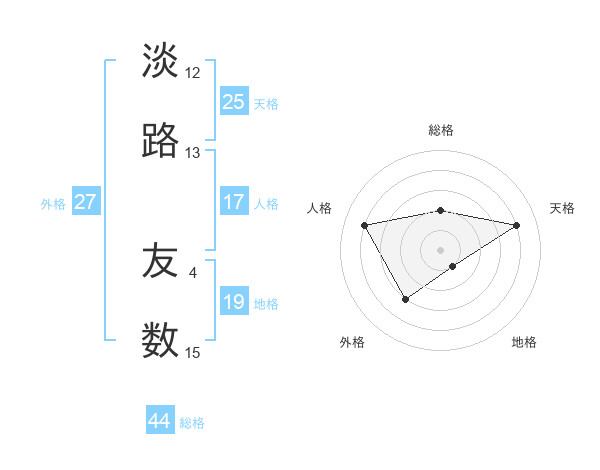 淡路 友数さんの総格は44画の2点!