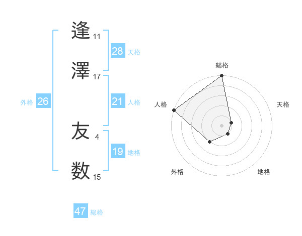 逢澤 友数さんの総格は47画の5点!