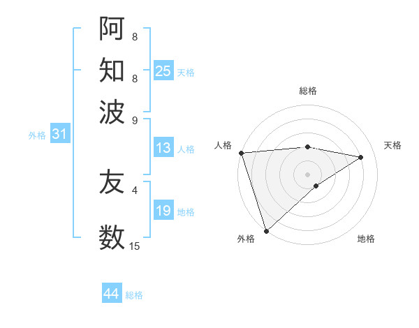 阿知波 友数さんの天格は25画の4点!