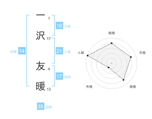 一沢 友暖さんを姓名の画数から五運を鑑定