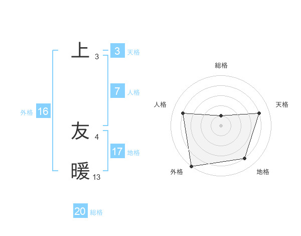 上 友暖さんの総格は20画の1点!