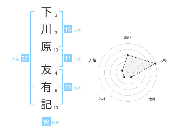 下川原 友有記さんを姓名の画数から五運を鑑定