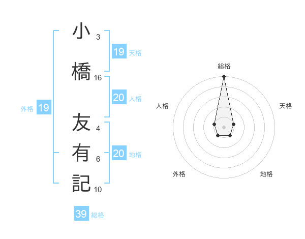 小橋 友有記さんを姓名の画数から五運を鑑定