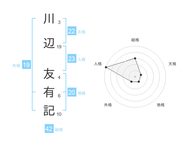 川辺 友有記さんを姓名の画数から五運を鑑定