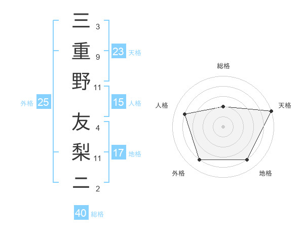 三重野 友梨ニさんを姓名の画数から五運を鑑定