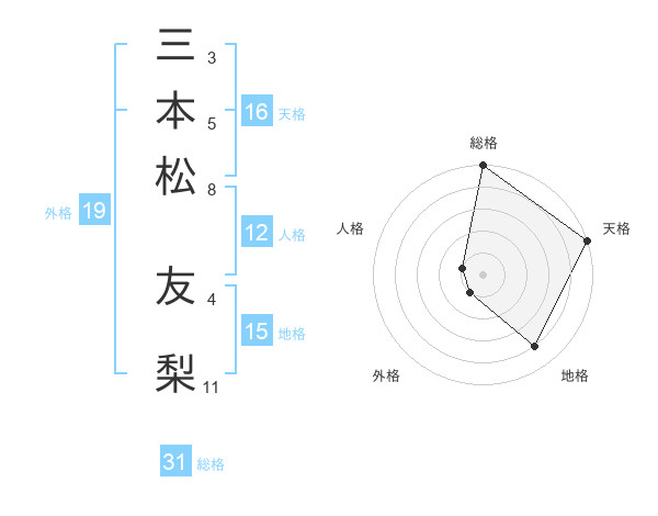 三本松 友梨さんを姓名の画数から五運を鑑定