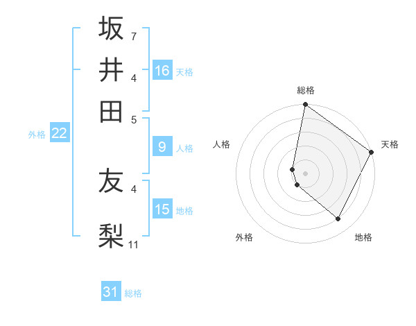 坂井田 友梨さんを姓名の画数から五運を鑑定