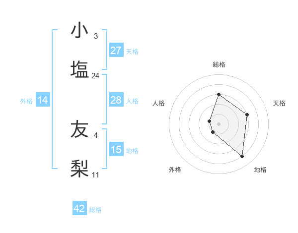 小塩 友梨さんを姓名の画数から五運を鑑定