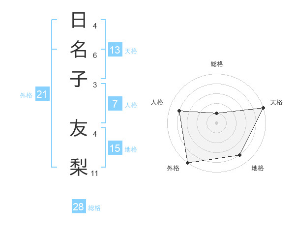 日名子 友梨さんを姓名の画数から五運を鑑定