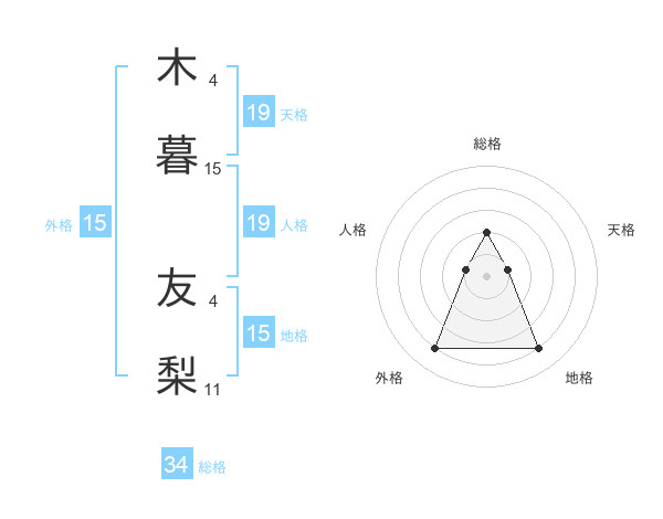 木暮 友梨さんの総格は34画の2点!