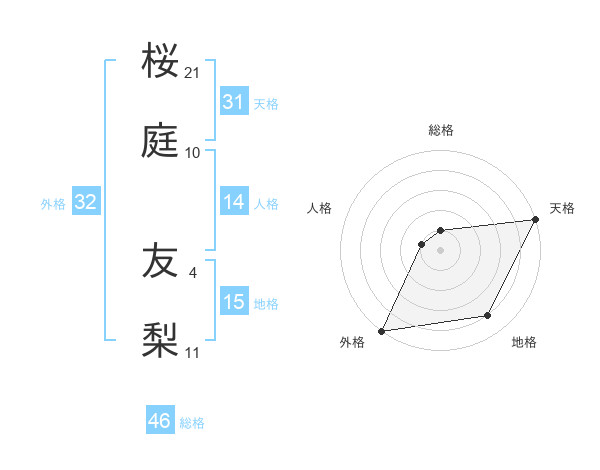 桜庭 友梨さんの外格は32画の5点!