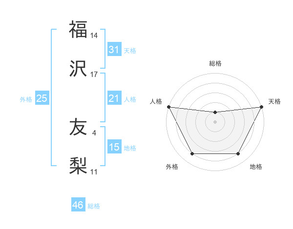 福沢 友梨さんを姓名の画数から五運を鑑定