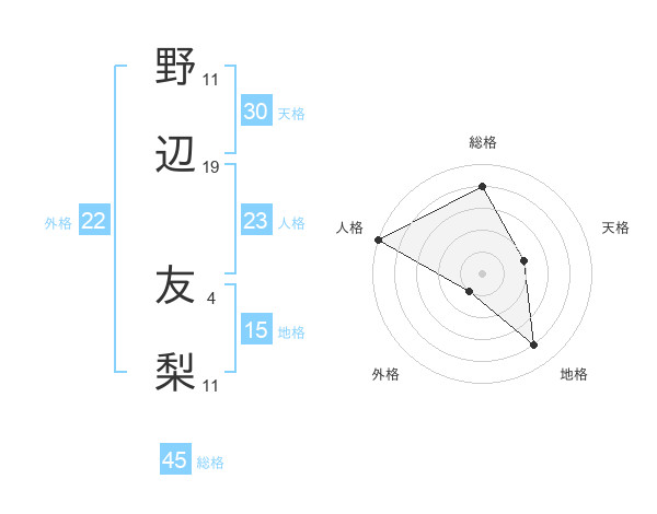 野辺 友梨さんを姓名の画数から五運を鑑定