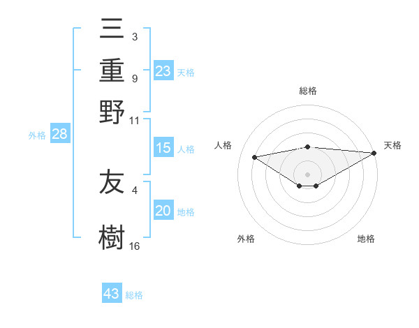 三重野 友樹さんを姓名の画数から五運を鑑定