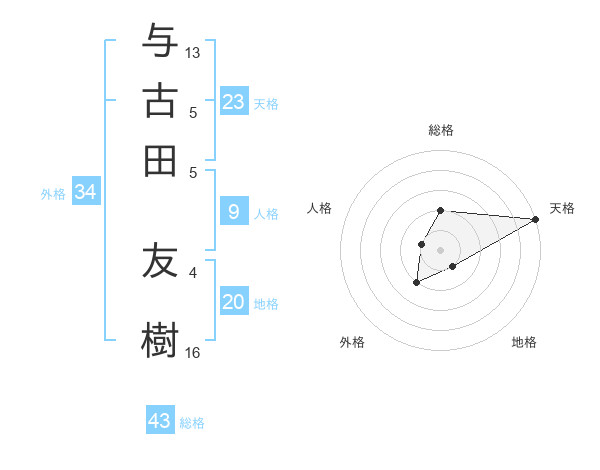 与古田 友樹さんを姓名の画数から五運を鑑定