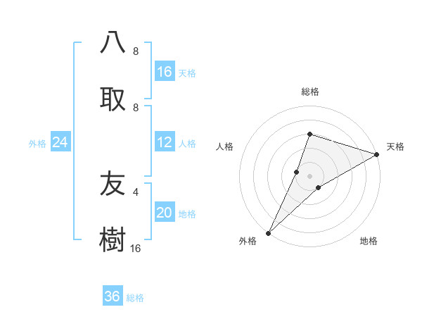 八取 友樹さんの天格は16画の5点!