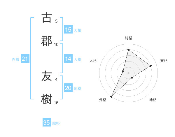 古郡 友樹さんを姓名の画数から五運を鑑定