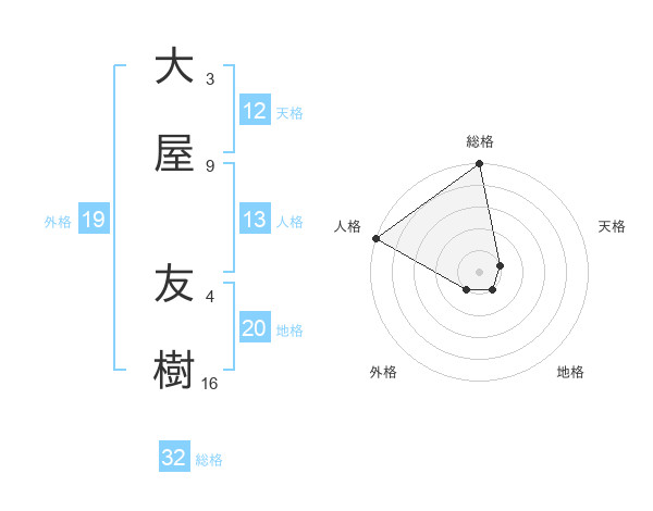 大屋 友樹さんを姓名の画数から五運を鑑定