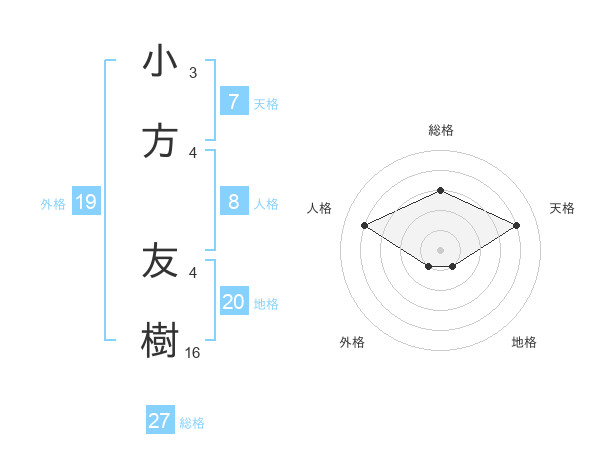 小方 友樹さんの総格は27画の3点!