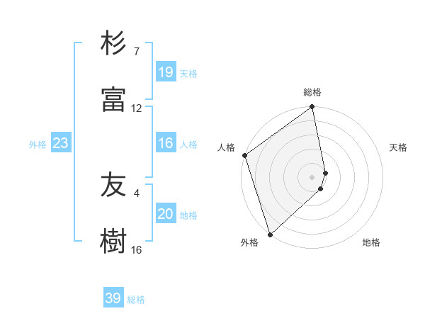 杉富 友樹さんを姓名の画数から五運を鑑定