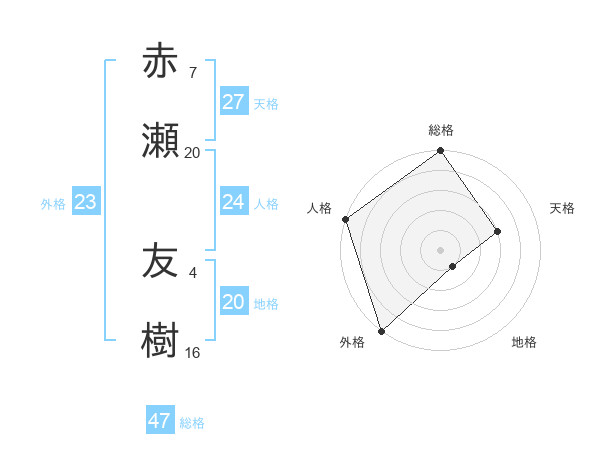 赤瀬 友樹さんを姓名の画数から五運を鑑定