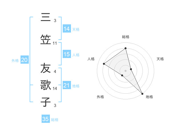 三笠 友歌子さんを姓名の画数から五運を鑑定
