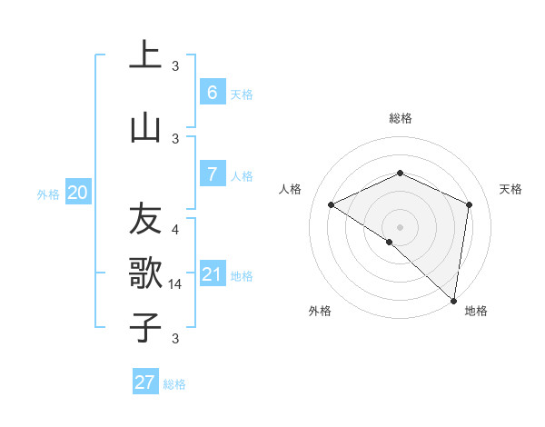 上山 友歌子さんを姓名の画数から五運を鑑定