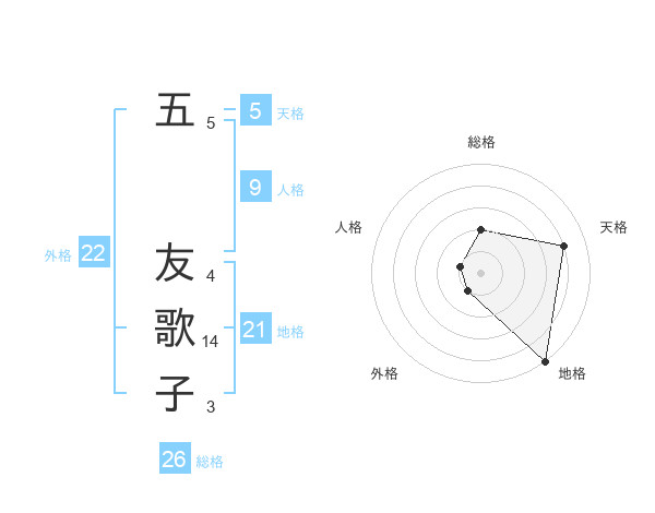 五 友歌子さんの外格は22画の1点!