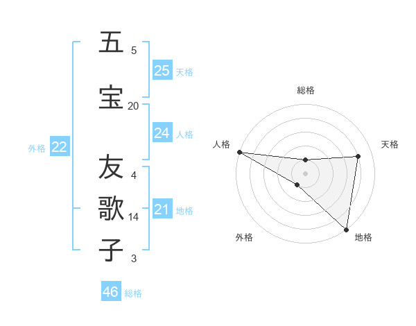 五宝 友歌子さんを姓名の画数から五運を鑑定