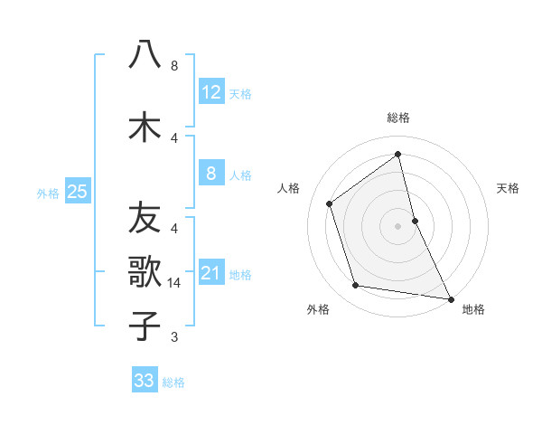 八木 友歌子さんを姓名の画数から五運を鑑定