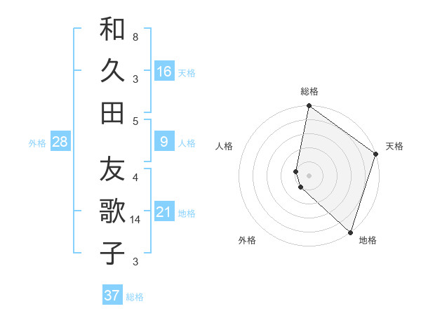 和久田 友歌子さんを姓名の画数から五運を鑑定