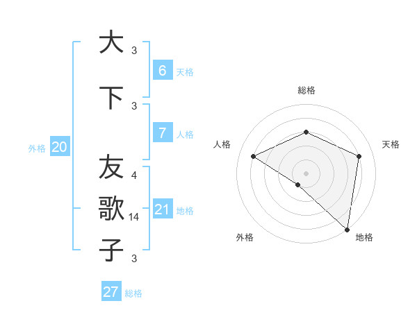 大下 友歌子さんを姓名の画数から五運を鑑定